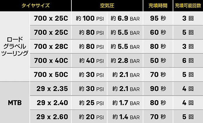 \ 最大120psiまで充填可能 /