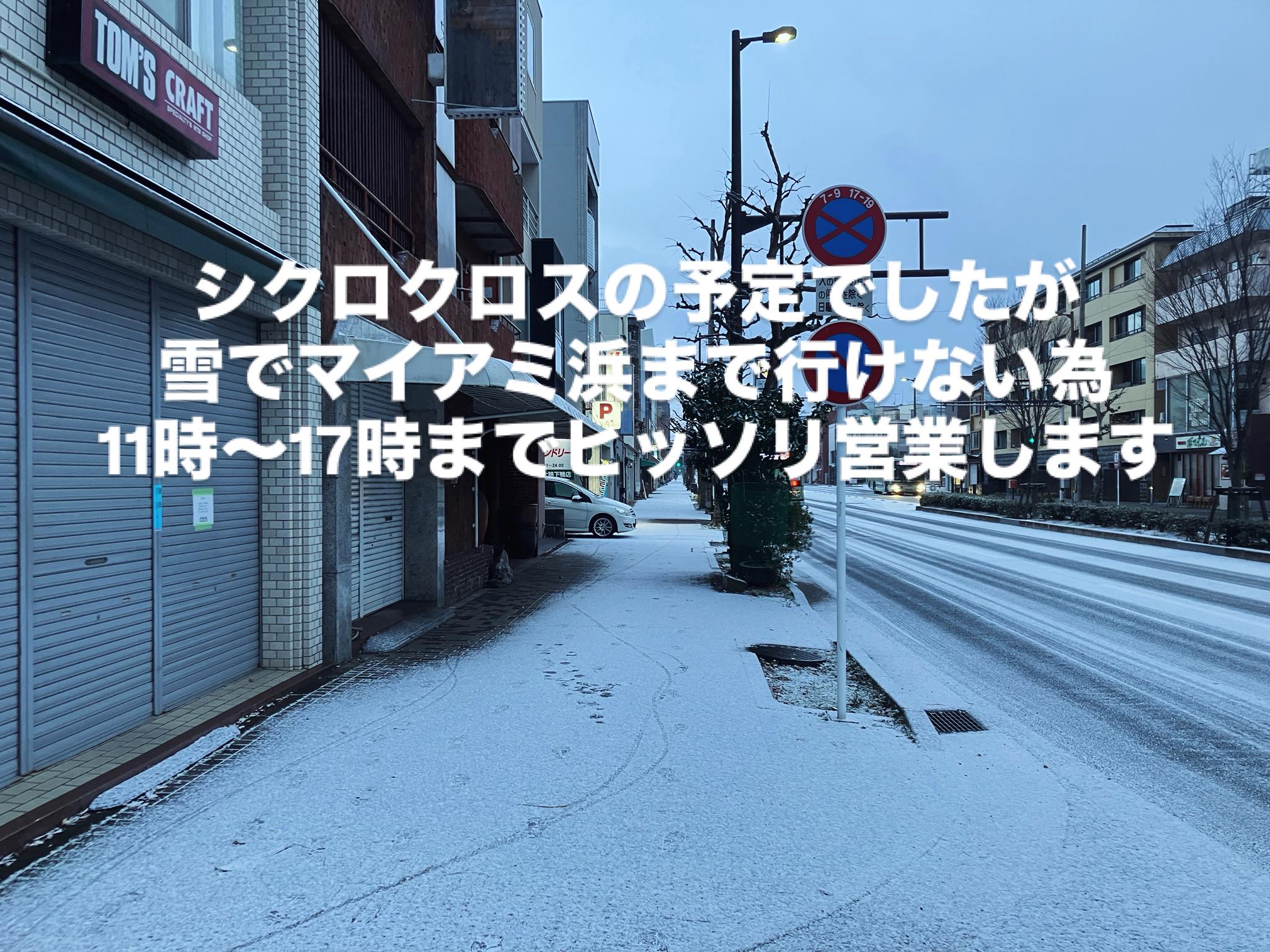 1/25は関西シクロ参加予定でしたが、降雪の影響で現地までたどり着けない可能性があるため、レースをキャンセルし、店舗営業いたします。